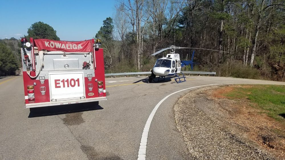 The other, the initial call said the patient was unconcious, and that activates Life Flight.. We are technically there to support the helicopter operations. Clear a safe landing area, keep people from driving into the helicopter ( harder than you would think ) , and put the fire out if the pilot has a bad day.. Many times, we also transport the flight medic to the scene when the ground ambulance is not close.