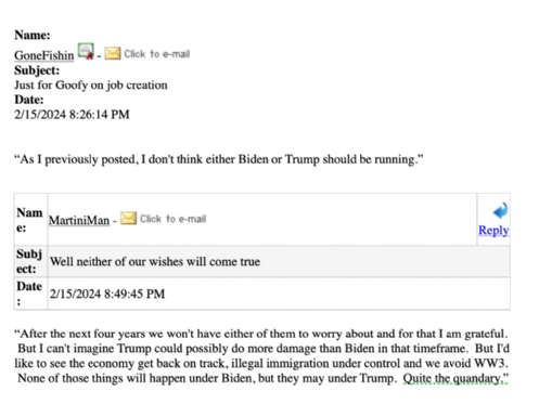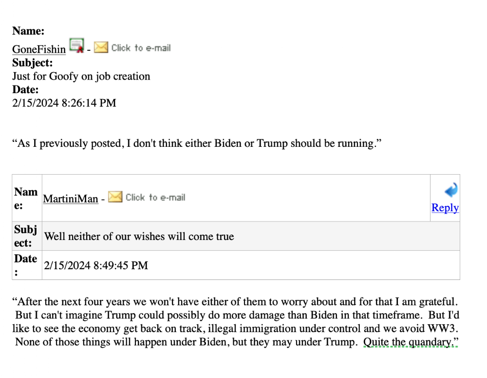 From previous posts, we both agreed neither was our choice. The only difference was our choice as the lessor of two evils.