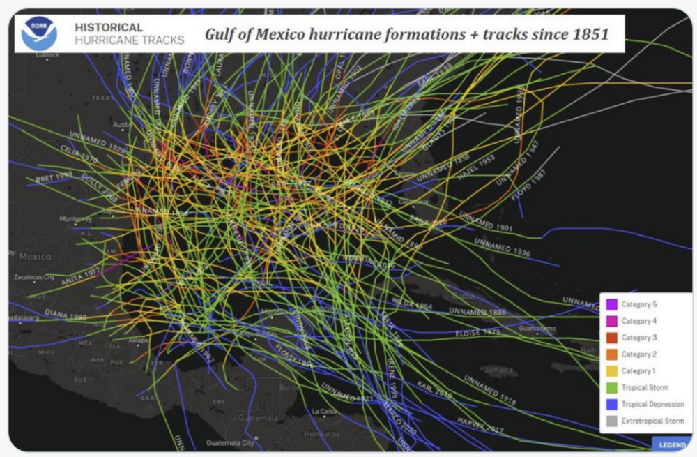 Dude, we have been having hurricanes since long before the use of fossil fuels. And no, there has not been increase in the frequency or intensity of hurricanes. And yes, this has been a relatively quiet year for hurricanes (despite NOAA's usual forecast for more than usual). And yes, hurricanes don't always form in the Gulf (146 since the 1850's) but when they do they grow in intensity due to the warmer water than in the Atlantic. Some graphs to prove my points are below for your education.....not that it will matter because climate zealots are impervious to facts and data...unless it is their manipulated data. Oh, and by the way, the U.S. has gone a record 11 years without a major hurricane making landfall until this year, all with tons of CO2 emissions.