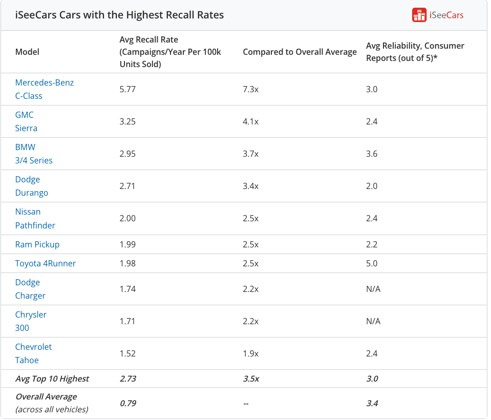 And then there is the recall list per unit sold so you can normalize for sales. Here is the ten worst, none of which is a Tesla product.