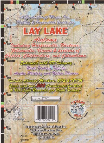 This map is great for fishing and navigating the lake on water or by road. Including Harpersville, Westover, Wilsonville, Vincent and portions of Chelsea, Childersburg, and Columbiana. Enhanced with 3D imagery. This map has fishing tips by Archie Phillips and Nolen Shivers. Includes Channel Markers, GPS and UTM Grids with over 500 Coordinates for both.