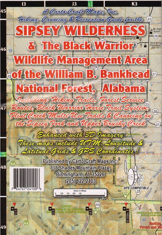 This map is great for visiting the Sipsey Wilderness. Includes canoeing and horse trails.