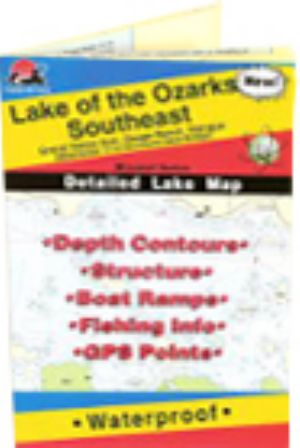 Lake of the Ozarks has one of the Midwest's most productive fisheries. National, regional & local bass tournaments have added to the reputation. Recognized as the nations most developed lake. Most fishing done in the early morning or late evening. This is the premier series of Fishing Hot Spots maps. Each detailed maps provides depth contours, structure, boat ramps and updated fishing information, with productive spots marked on the map. You'll also find a complete lat/long grid and dozens of GPS waypoints. These four-color maps are as easy-to-use as they are to read! Size - 24 x36
