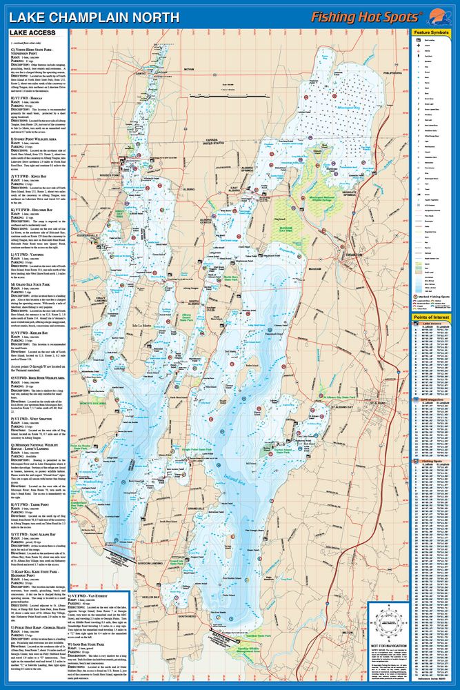 Lake Champlain (North Section), New York/Vermont Waterproof Map (Fishing Hot Spots)