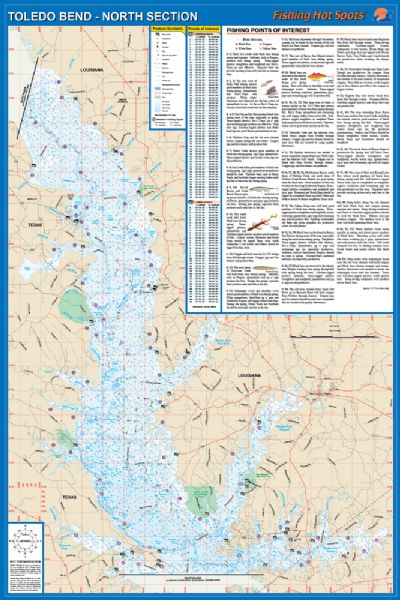Toledo Bend Reservoir (South Section - Dam to Patroon Bay) Texas/Louisiana Waterproof Map (Fishing Hot Spots)