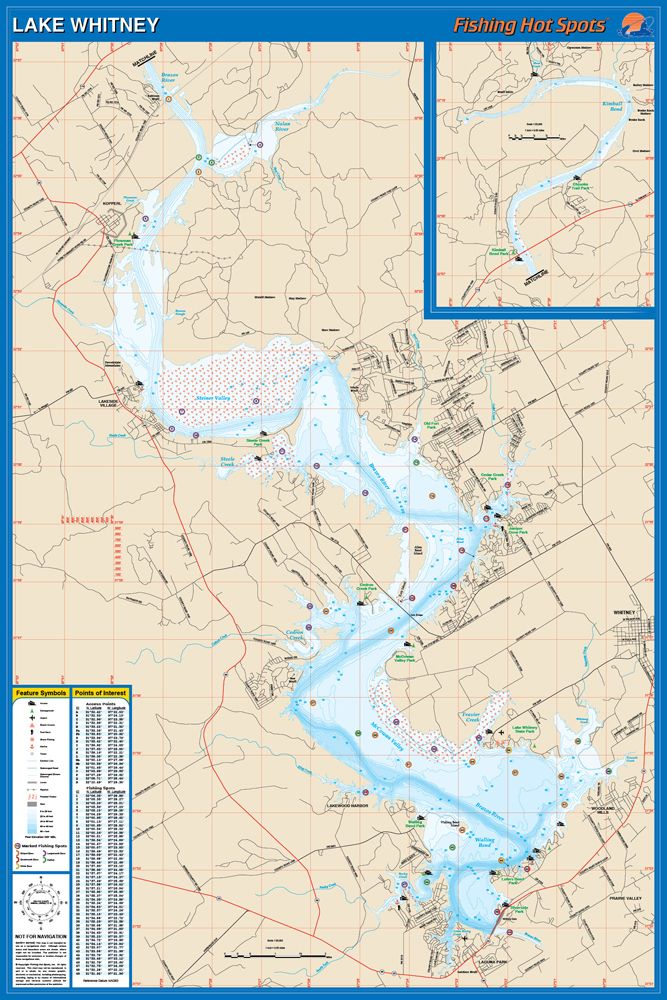 Whitney, Texas Waterproof Map (Fishing Hot Spots)