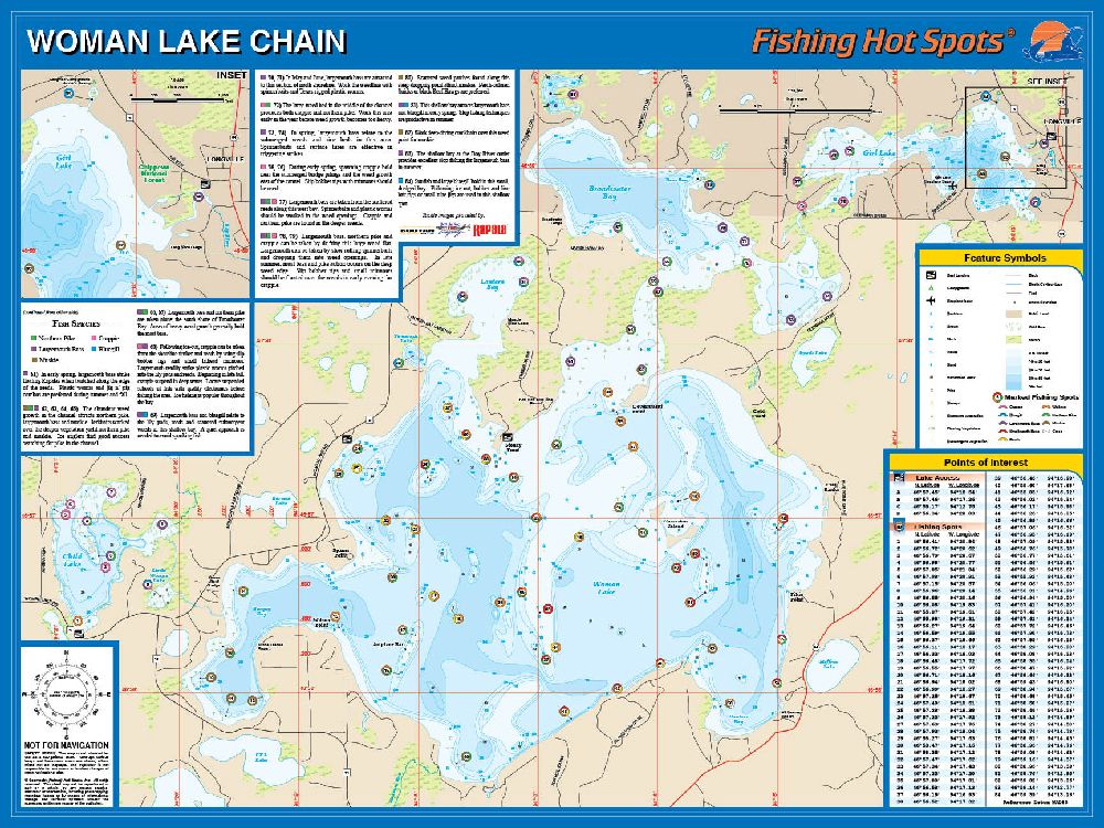 Woman Lake Chain, Minnesota Waterproof Map (Fishing Hot Spots)