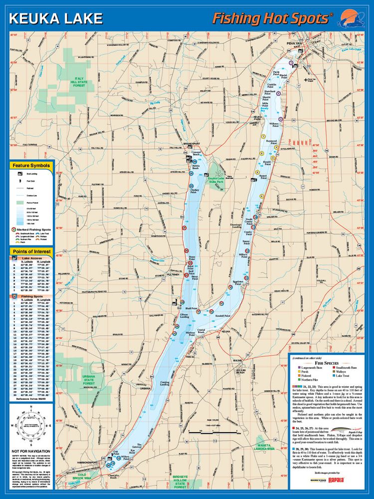 Keuka Lake, New York Waterproof Map (Fishing Hot Spots)