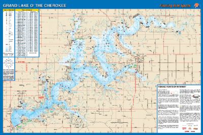 Grand Lake O' the Cherokees, Oklahoma Waterproof Map (Fishing Hot Spots)