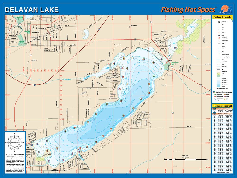 Delavan (Walworth County), Wisconsin Waterproof Map (Fishing Hot Spots)