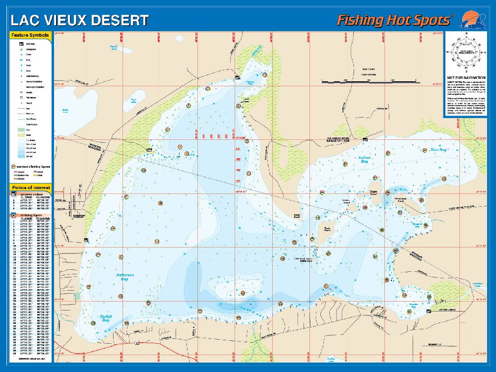 Lac Vieux Desert (Wisconsin/Michigan) Waterproof Map (Fishing Hot Spots)